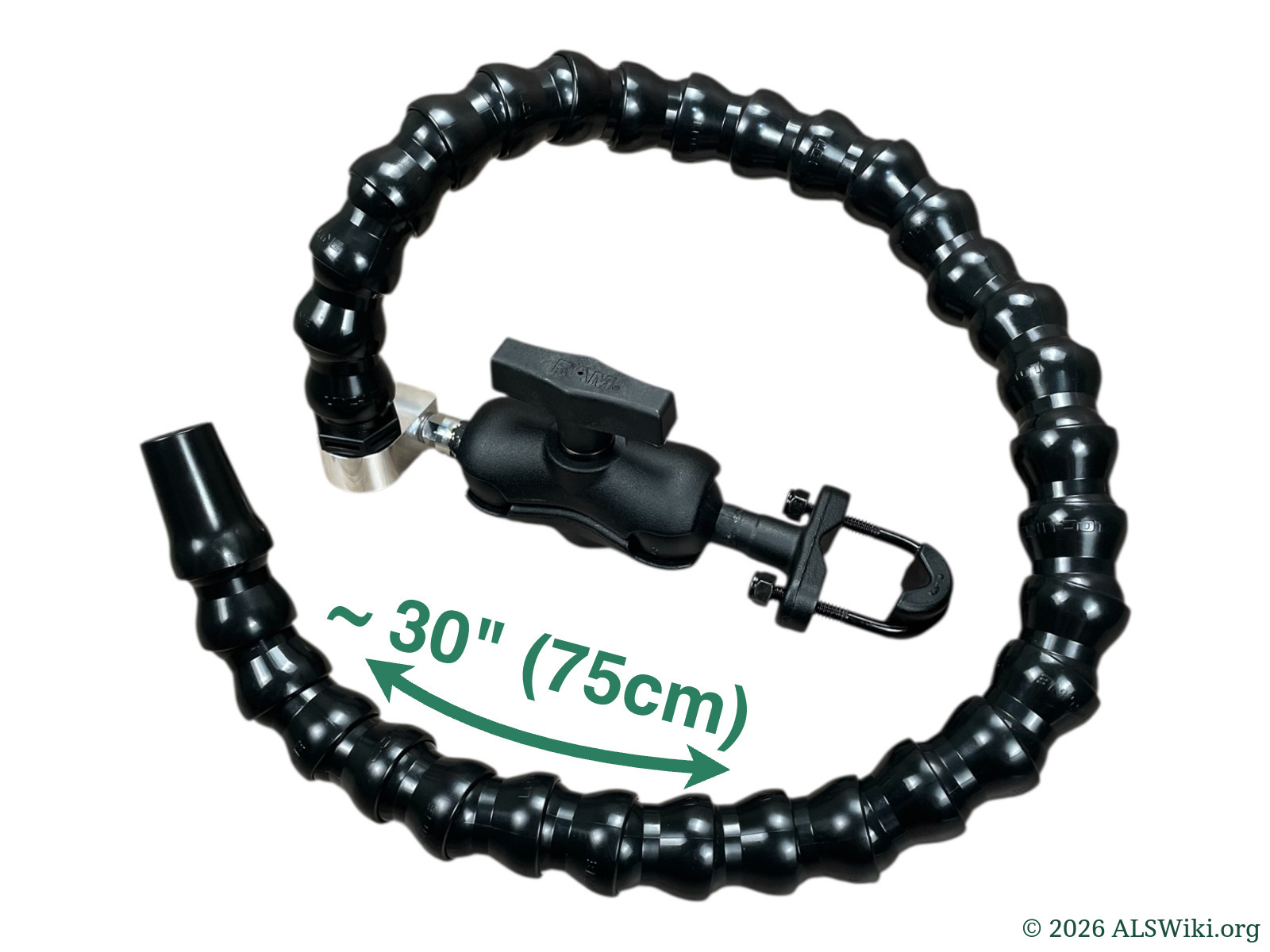 The Mouthpiece Ventilator Mount System by ALSWiki.org makes it easy to mount mouthpiece ventilator circuits to any surface.